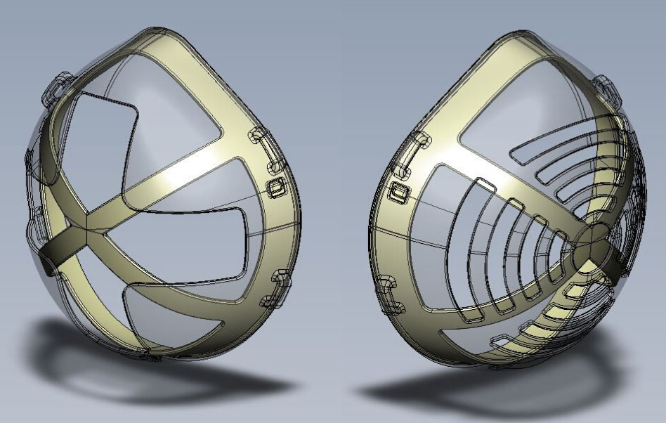 This mask design is comprised of two 3D printing files; the main cup section of the mask, and the ring section which clips onto the cup section.